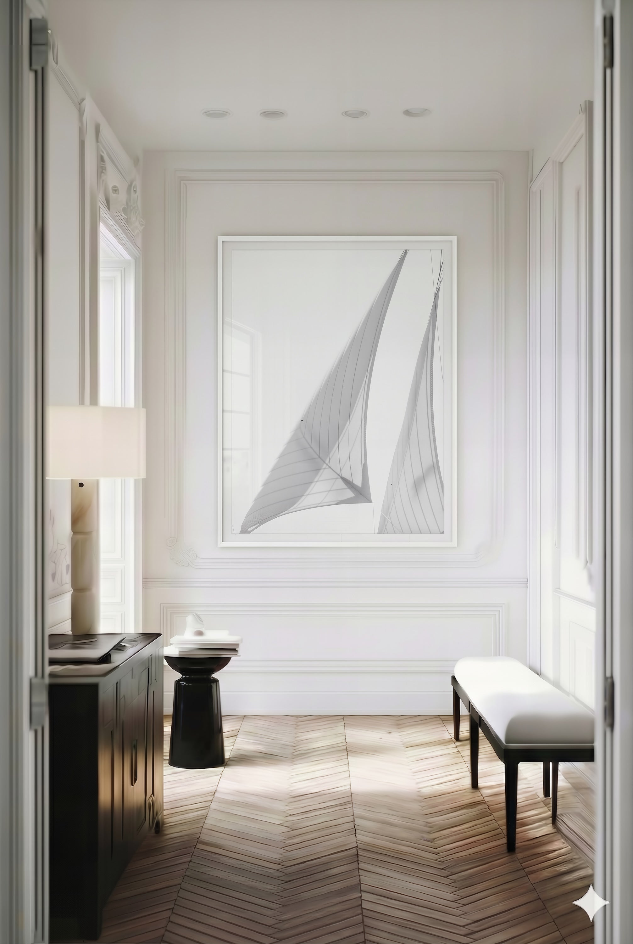 What seems suspended is often held with care. Angles shift; seams become spans; shadow carries structure. The sea and sun recede to brightness, leaving geometry to speak. Patience is the invisible rigging. Stillness can feel like flight. Seams stretch into spans; shadows hold weightless structure. The composition feels architectural, but the emotion is human—patience, balance, surrender. Calm is the quiet side of control.